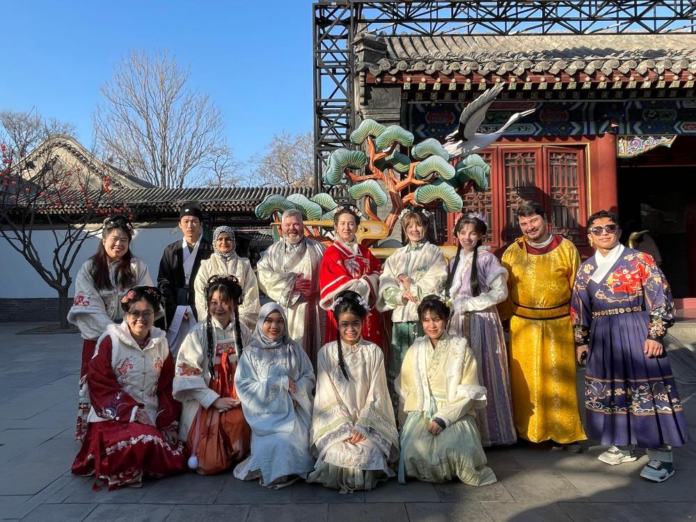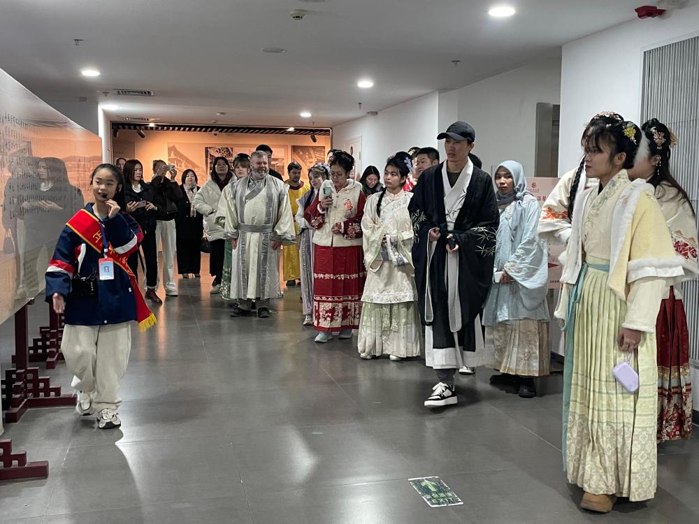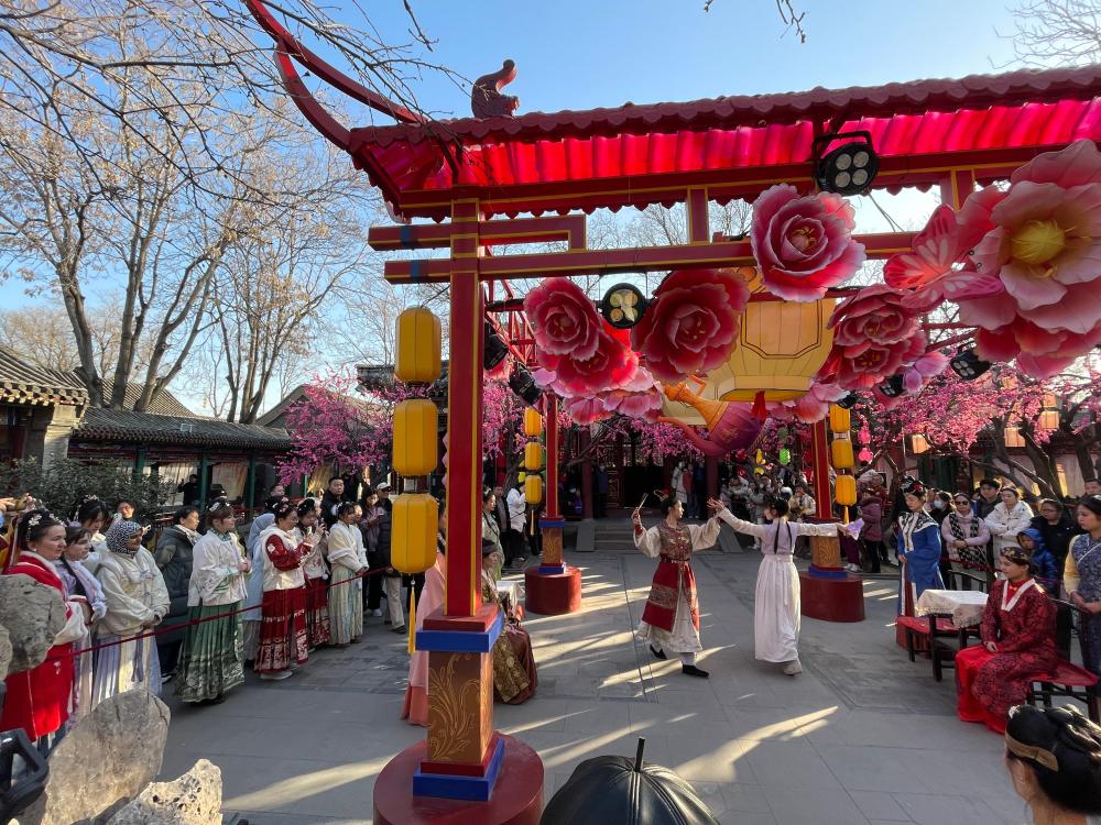 大家首先参观了正定荣国府,外国友人们不仅游览了荣国府古香古色的美景,更兴致勃勃地观看了荣庆堂院的实景演出“宝黛钗相会”,沉浸式体验红楼文化及中国年味,这种文化交流不仅丰富了“春节故事”的内涵,也为中国文化走向世界打开了新的窗口。
